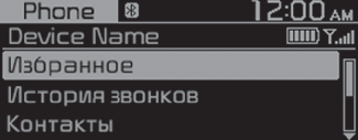 Нажмите для получения доступа к меню Bluetooth телефона после подключения телефона по Bluetooth.