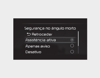 A definição da Temporização do aviso e do Volume do aviso aplica-se a todas as funções de Assistência à prevenção de colisão em ângulos mortos.