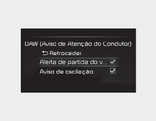 Se a opção "Leading Vehicle Departure Alert" (Alerta de partida do veículo à frente), a função informa o condutor quando o veículo da frente parte depois de uma paragem.