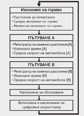 Трип компютърът отчита общия пробег след последното нулиране на компютъра.