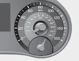 يشير عداد السرعة إلى سرعة السيارة وتتم معايرته بالأميال في الساعة (mph) و/أو الكيلومترات في الساعة (km/h).