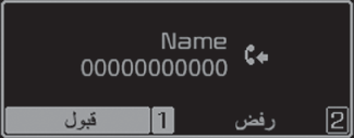 إذا كانت بيانات المتصل محفوظة في قائمة جهات الاتصال لديك، سيظهر اسم المتصل ورقم هاتفه. وإذا لم يتم حفظ معلومات المتصل في قائمة جهات اتصالك، فسيتم عرض رقم الهاتف المتصل فقط.