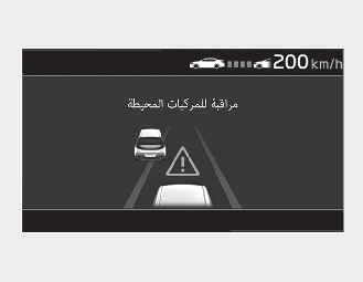 عند اختفاء السيارة التي أمامك (وسرعة السيارة: أقل من 30 كم/ساعة) في الحارة التالية، فسيصدر صوت جرس التحذير وستظهر رسالة. قم بضبط سرعة سيارتك حسب السيارات أو الأجسام التي تظهر أمامك فجأة بالضغط على دواسة الفرامل وفقًا لحالة الطريق وظروف القيادة.