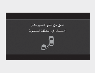 عند اكتشاف خطر التصادم أثناء تشغيل التحذير بشأن الاصطدام أثناء الرجوع، فيتم التحكم في الفرامل. ستبلغ لوحة العدادات السائق عن التحكم في الفرامل. إذا كان نظام كاميرا الرؤية الخلفية في وضع التنشيط، فستظهر أيضًا رسالة على شاشة نظام الصوت والفيديو والملاحة.