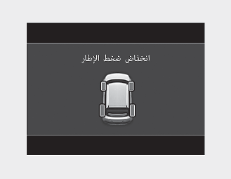 عند إضاءة مؤشرات تحذير نظام مراقبة ضغط الإطارات وعرض رسالة التحذير على شاشة LCD على مجموعة العدادات، يكون ضغط إطار واحد أو أكثر من إطارات سيارتك منخفضًا بدرجة كبيرة. يضيء مصباح مؤشر وضع ضغط الإطارات المنخفض إلى الإطار ذي الضغط المنخفض بدرجة كبيرة عن طريق إضاءة ضوء الوضع المناظر.