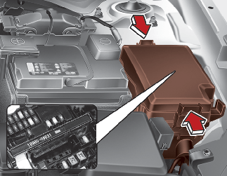 بعد التحقق من لوحة المصاهر في حجرة المحرك، ركّب غطاء لوحة المصهر بإحكام من خلال صوت النقر المسموع.