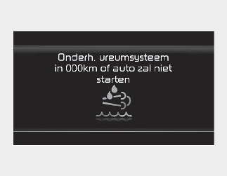 Anders kan het voertuig niet opnieuw worden gestart nadat de motor is uitgeschakeld met behulp van de toets ENGINE START/STOP (Motor starten/stoppen). Afhankelijk van het rijpatroon, de omgevingsomstandigheden en het wegprofiel kan de afgetrokken resterende afstand afwijken van de werkelijke rijafstand. Wanneer de melding "Low Urea" (Ureum laag) of "Refill Urea" (Vul ureum) wordt weergegeven, moet voldoende ureumoplossing worden toegevoegd. Wanneer de melding "Refill Urea in 000 km or vehicle will not start" (vul ureum over 000 km of auto start niet meer) wordt weergegeven, moet voldoende ureumoplossing worden bijgevuld.