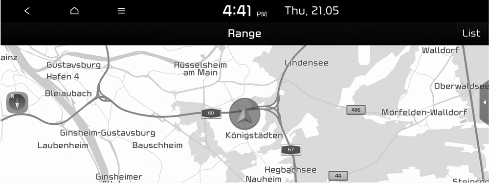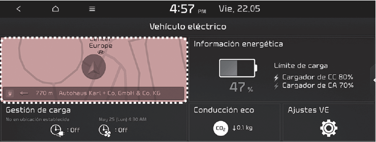 Seleccione "EV (vehículo eléctrico) → Map (Mapa)" en la pantalla.