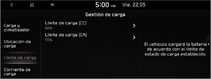 Si el nivel de carga objetivo de la batería es inferior al nivel de carga de la batería de alto voltaje, la batería no se cargará.