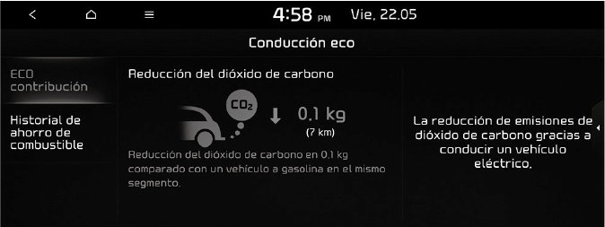 Se muestra información sobre la reducción de CO2 en comparación con los vehículos que funcionan con gasolina.