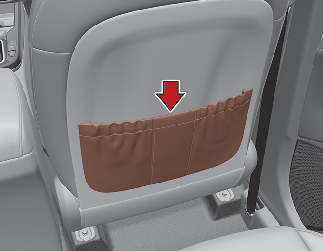 El bolsillo del asiento se encuentra en la parte trasera del respaldo del pasajero delantero.