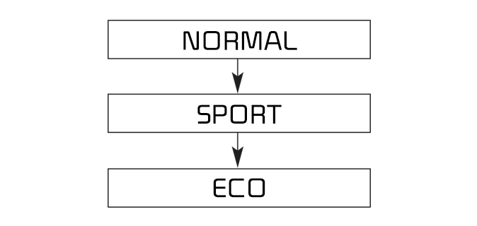 El modo cambia, como se indica a continuación, cada vez que se pulsa el botón DRIVE MODE (modo de conducción).