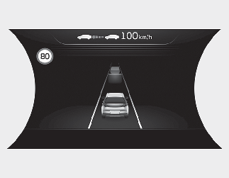 Si el límite de velocidad de la carretera cambia durante el funcionamiento de la asistencia de límite de velocidad manual o del control de crucero inteligente, se muestra una flecha en el sentido hacia arriba o hacia abajo para informar al conductor de que es necesario cambiar la velocidad fijada. En este momento, el conductor puede cambiar la velocidad fijada de acuerdo con el límite de velocidad utilizando el interruptor + o - en el volante.