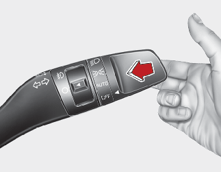 To turn on the high beam headlamp, push the lever away from you. The lever will return to its original position.