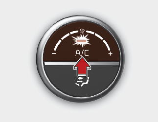 When turning the knob, the temperature will increase or decrease by 0.5°C/1°F. When set to the lowest temperature setting, the air conditioning will operate continuously.