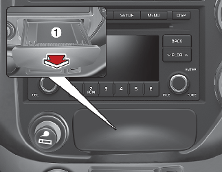 لإزالة منفضة السجائر لتفريغها أو تنظيفها، اضغط على اللسان (1) واسحبها للخارج بالكامل.