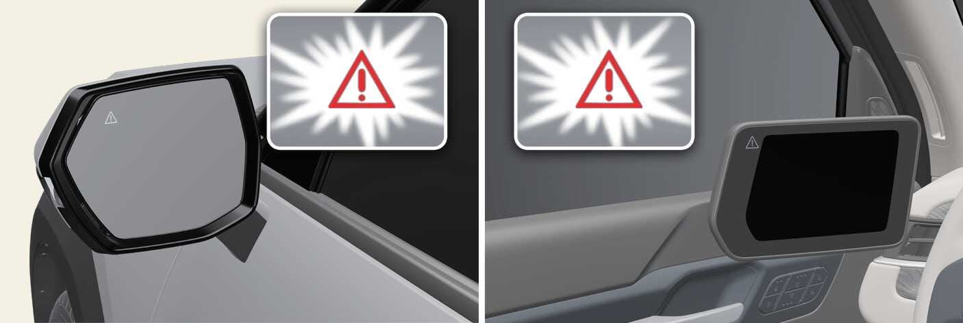 La spia luminosa apparirà sullo specchietto retrovisore esterno (specchietto laterale) e sul display a sovrimpressione (se in dotazione) quando il veicolo su entrambe le corsie viene rilevato dalla parte posteriore.