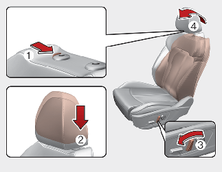 If you recline the seatback towards the front with the headrest and seat cushion raised, the headrest may come in contact with the sun visor or other parts of the vehicle.