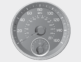 The speedometer indicates the speed of the vehicle and is calibrated in miles per hour (mph) and kilometers per hour (km/h).