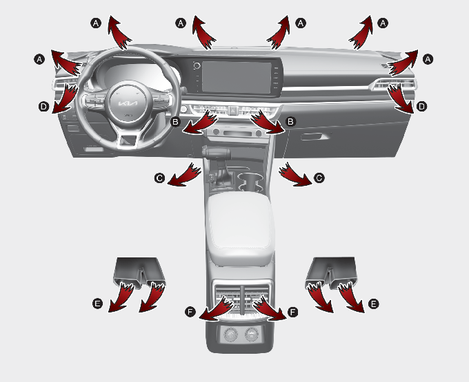 You can adjust the direction of air delivered from these vents using the vent control lever as shown. If you do not want the