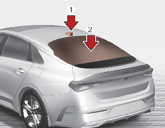 To prevent damage to the rear glass antenna, never use sharp instruments or window cleaner containing abrasives to clean the window. Clean the inside surface of the rear glass window with a piece of soft cloth.