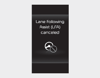 If the driver still does not have their hands on the steering wheel after the hands-off warning, the 'Lane Following Assist (LFA) canceled' warning message will appear and Lane Following Assist will be automatically canceled.