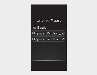 If 'Highway Driving Assist' is selected, it helps maintain distance from the vehicle ahead, maintain the set speed, and keep the vehicle between lanes.