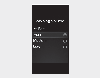 If you change the Warning Volume, the Warning Volume of other Driver Assistance systems may change.