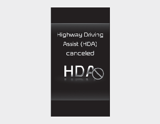 If the driver still does not have their hands on the steering wheel after the hands-off warning, the 'Highway Driving Assist (HDA) canceled' warning message will appear and Highway Driving Assist and Lane Following Assist will be automatically canceled.