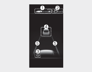 Whether there is a vehicle ahead and the target vehicle to Vehicle Distance are displayed.