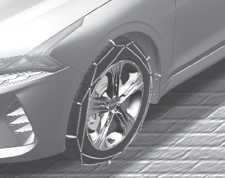 For all wheel drive vehicle, the use of snow tires is recommended instead of tire chains; If unavoidable, mount snow chains on the front tires only. In this case, use snow chains with a thickness of less than 0.47 in (12 mm) and minimize the driving distance in order to prevent damage to the all wheel drive system.