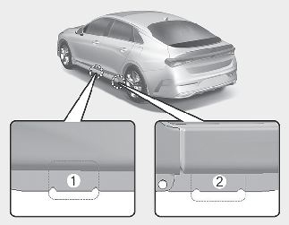 Place the jack at the front (1) or rear (2) jacking position closest to the tire you are changing. Place the jack at the designated locations under the frame. The jacking positions are plates welded to the frame with two tabs and a raised dot to line up with the jack.