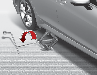 Insert the wrench into the jack and lower the vehicle to the ground by turning the wheel nut wrench counterclockwise.