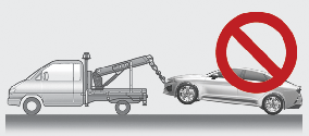 If you tow the vehicle while the front wheels are touching the ground, the vehicle motor may generate electricity and the motor components may be damaged or a fire may occur.