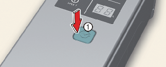 The charging current changes whenever the button (1) is pressed for less than 1 sec with the charger plugged into an electrical outlet but not the vehicle. Control box