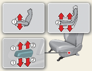 Pull the front portion (1) of the control switch up to raise or press down to lower the front part of the seat cushion.