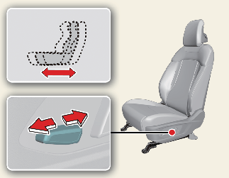 Before driving, adjust the seat to the proper position so you can easily control the steering wheel, pedals and switches on the instrument panel.