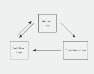 Alarmen aktiveres hvis systemet oppfyller betingelsen "innbrudds-/helningssensor av" i "tyverialarm"-fasen.
