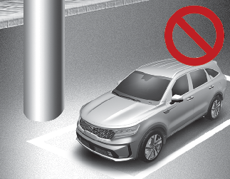 Når fjernstyrt smart parkeringsassistanse ikke fungerer på riktig måte, får du opp en varselmelding om "kontroll av parkeringsassistanse" på skjermen for infotainmentsystemet. Hvis du får opp denne meldingen, må du avslutte bruken av funksjonen. Vi anbefaler også at du får funksjonen kontrollert hos en godkjent Kia-forhandler/servicepartner.