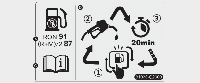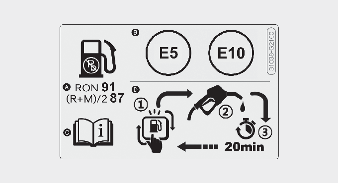 Bränsledekalen finns på insidan av tankluckan.
