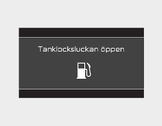 Vänta tills trycket i bränsletanken har utjämnats. Meddelandet visas när tankluckan öppnas efter att trycket i bränsletanken har utjämnats.