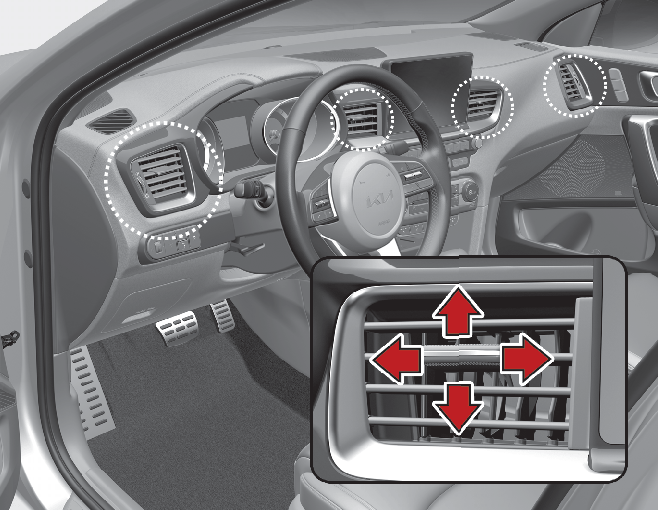 Det går även att ändra riktningen på luftflödet från dessa ventiler med hjälp av ventilationsreglaget enligt bilden.