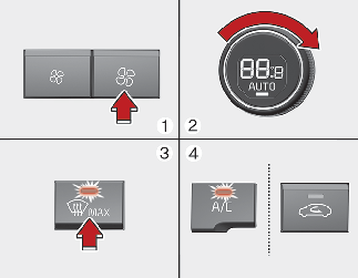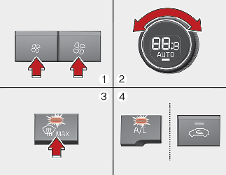 Ställ in reglagen manuellt om luftkonditionering och friskluftsinställning inte väljs automatiskt. Fläkthastigheten ökar om