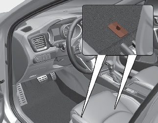 VIKTIGT: bilen har golvmattfästen som håller fast golvmattan på förarsidan. För att undvika att golvmattan hindrar pedalernas användning bör du endast använda originalmattor från Kia.