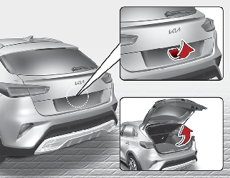 När alla dörrar är låsta och om knappen ”lås upp” trycks in på smartnyckeln i mer än 1 sekund kommer bakluckan att låsas upp. När du öppnar bakluckan och sedan stänger den låses den automatiskt.