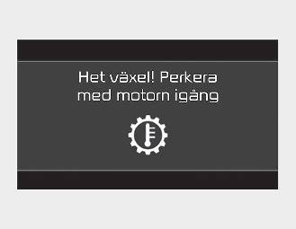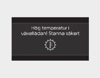 Om det här sker ska du stanna på en säker plats, stanna fordonet med motorn igång, lägg i broms och växla fordonet till P (parkering) och låt växellådan kylas ned.