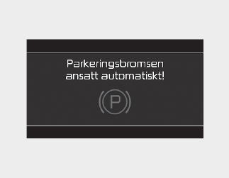 Om du försöker att trycka ner gaspedalen och köra iväg med EPB aktiverad, utan att den lossas automatiskt, hörs en varningssignal (en gång) och ett meddelande visas.