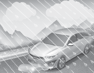 Kraftigt regn gör det svårare att se och ökar den bromssträcka som krävs för att stanna bilen. Kör långsamt.