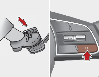 -knappen. Hastigheten måste vara över 30 km/h (20 brittiska mil/timma) för att funktionen ska återaktiveras.