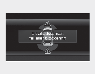 Varningsmeddelandet “Ultrasonic sensor error or blockage” (Ultraljudssensor, fel eller blockering) visas i klustret.
